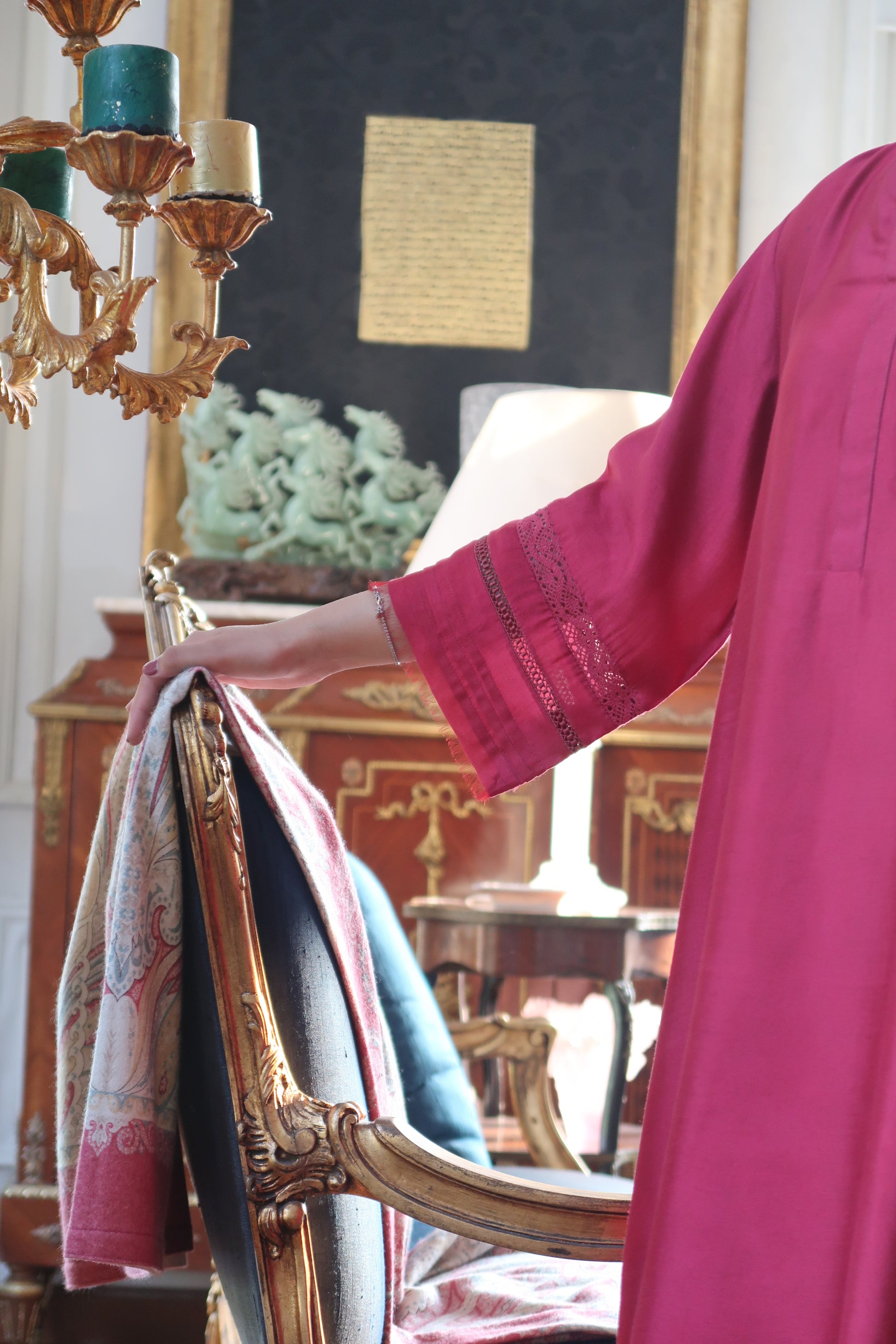 A timeless essential, this pure cotton-silk set is designed to transition effortlessly from day to evening. Featuring elegant organza accents and delicate lace detailing, it’s the perfect fusion of comfort and sophistication. Whether you’re hosting a brunch, attending a daawat, or simply dressing up for yourself — this piece does it all.