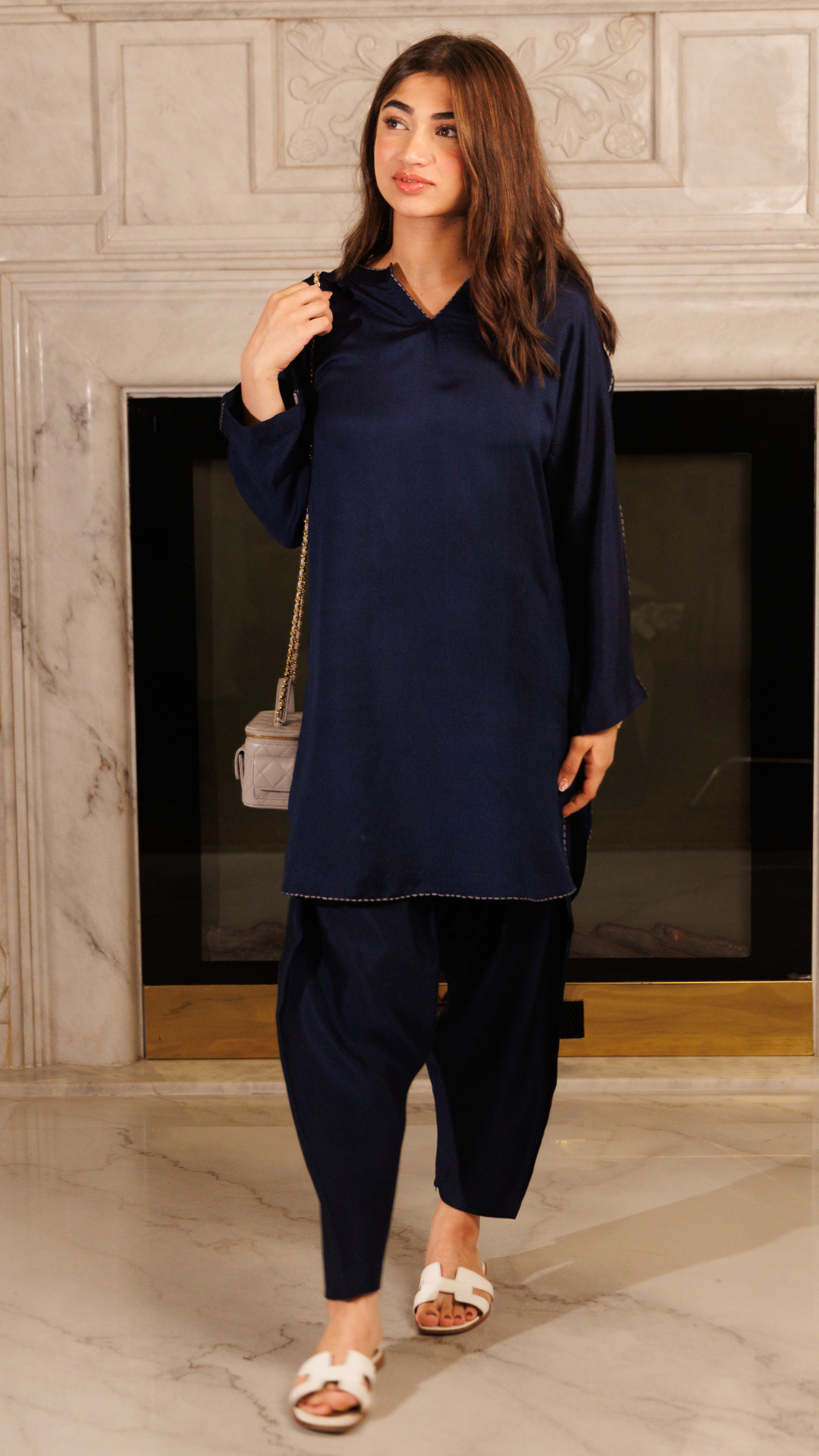Noir Blue Set is a versatile two-piece crafted on pure cotton silk, designed as an essential outfit that is both effortless and refined. The luxe fabric paired with delicate hand-stitching details enhances its understated elegance, while the deep dark blue tone adds timeless sophistication. Comfortable and easy to wear, this set is perfect for elevating everyday style with a touch of luxury.