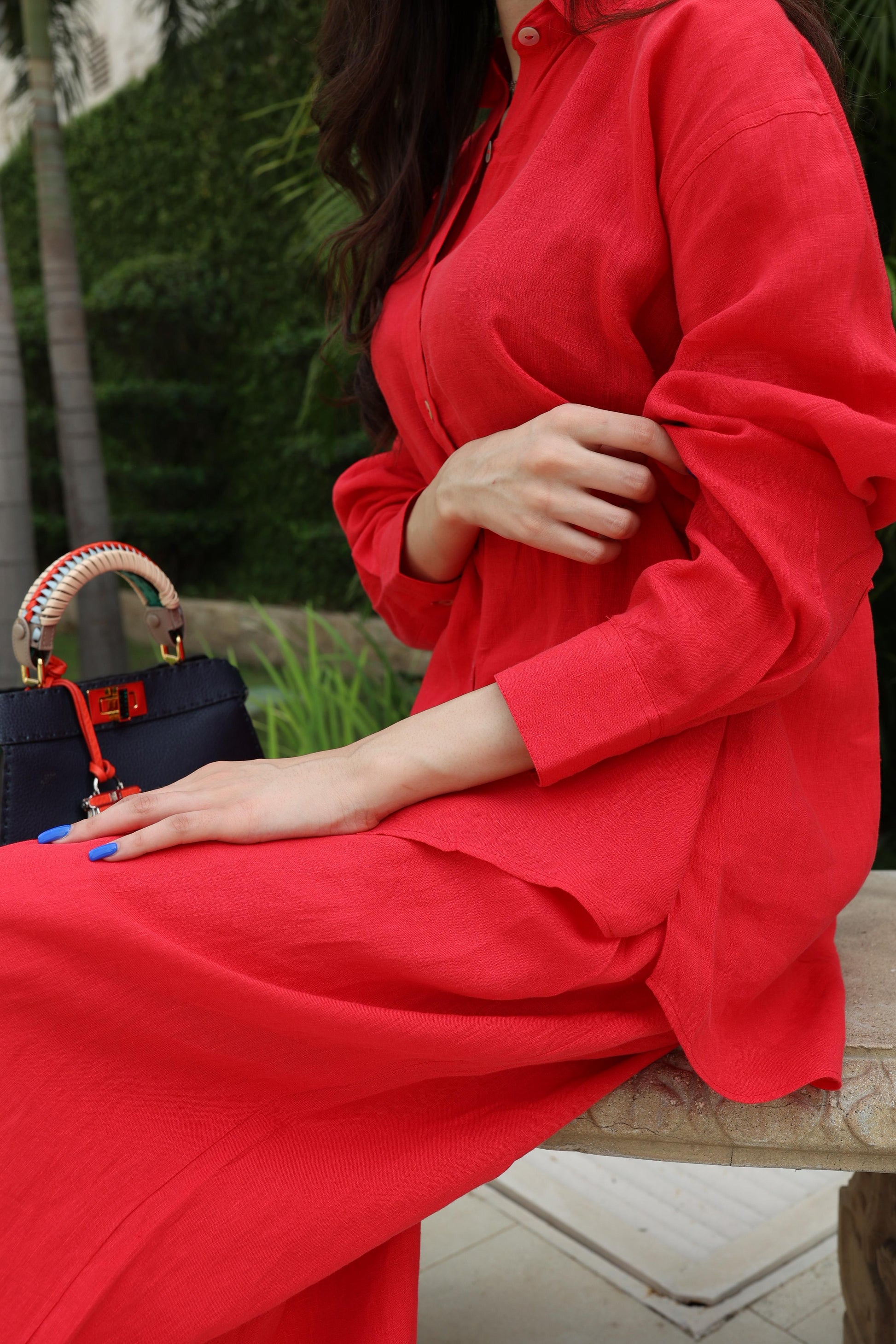 A wardrobe essential in premium linen. This blush button-down shirt features two front patch pockets and natural-toned buttons, cut in a relaxed fit for effortless everyday wear.